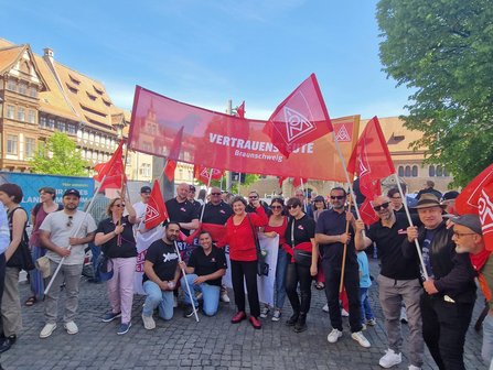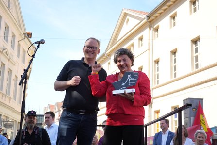 332.000 Menschen waren in diesem Jahr mit uns auf der Straße und haben für eine gerechte Arbeitswelt demonstriert. Bundesweit gab es 420 Veranstaltungen, die zentrale Kundgebung des DGB mit unserer Vorsitzenden Yasmin Fahimi fand in Chemnitz statt.