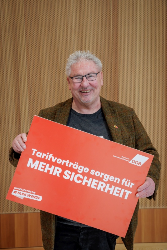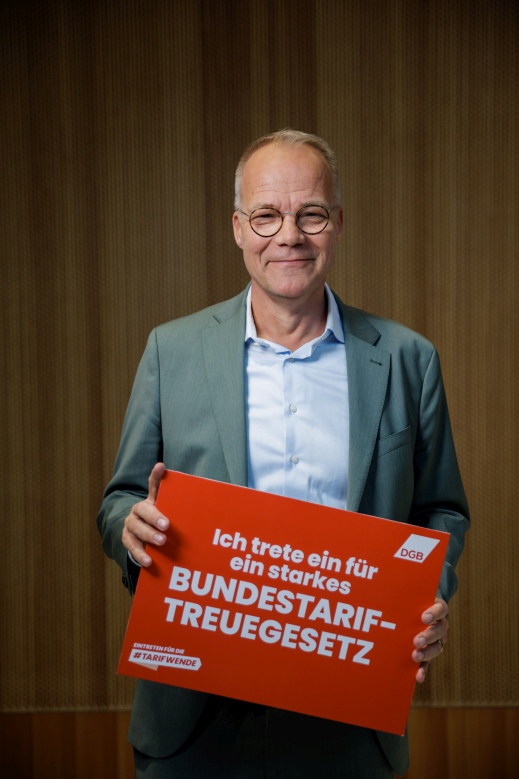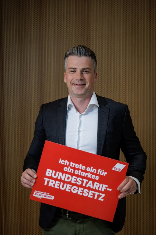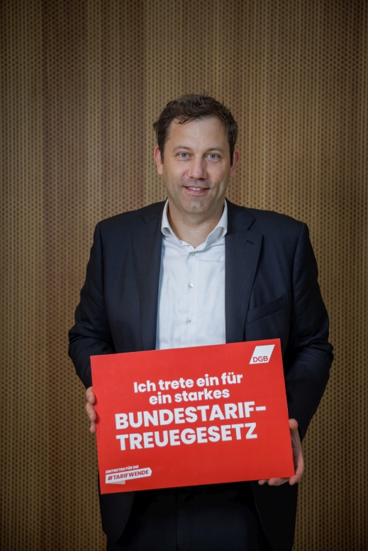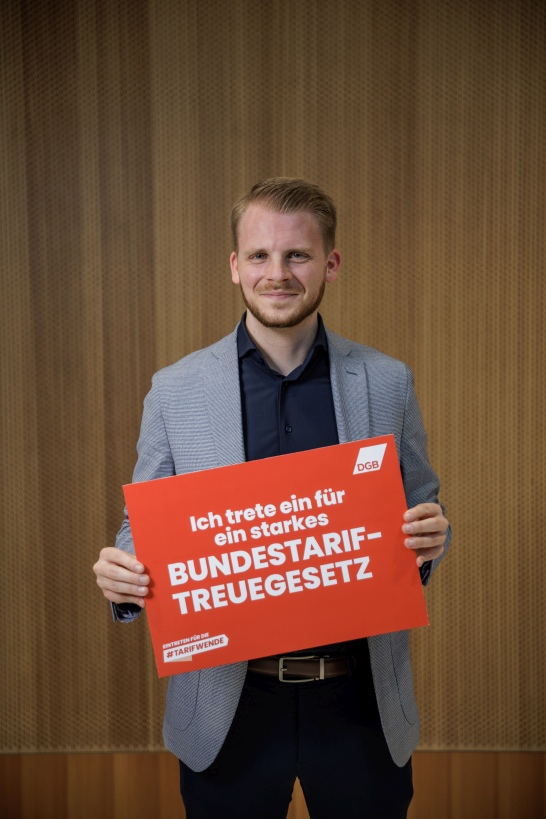 Wir als DGB kämpfen dafür, dass mehr Beschäftigte von einem Tarifvertrag profitieren. Deshalb machen wir uns auch in der Politik für mehr Tarifbindung stark und haben erreicht, dass das sogenannte Bundestariftreuegesetz endlich im Kabinett beschlossen wurde. Damit wird Lohndumping auf Staatskosten der Riegel vorgeschoben und die Voraussetzung für fairen Wettbewerb geschaffen. Jetzt muss das Bundestariftreuegesetz noch vom Bundestag im Detail verbessert und zügig umgesetzt werden. Auch du kannst aktiv für die #Tarifwende werden.